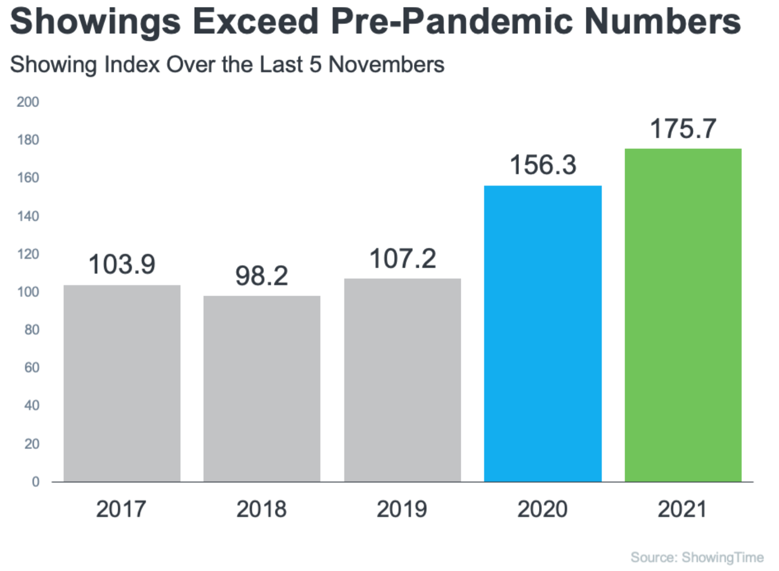 The ShowingTime Showing Index reports data from more than six million property showings scheduled across the country each month. In other words, it’s a gauge of how many buyers are out looking at homes at the current time. The latest index, which covers November showings, reveals that buyers are still very active in the market. Comparing this November’s numbers to previous years, this graph shows that the index is higher than last year and much higher than the three years prior to the pandemic. Clearly, there’s an influx of buyers searching for your home.